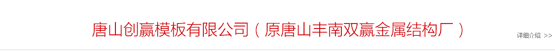 唐山創(chuàng)贏模板有限公司(原唐山豐南雙贏金屬結(jié)構(gòu)廠)始建于一九九七年,是具規(guī)模實力的組合模板生產(chǎn)企業(yè)。公司技術(shù)力量雄厚,質(zhì)量管理體系完善,與中鐵,中建,中交,中電,中水,中石油,中石化,河南水利工程局等大型施工企業(yè)有長期合作關(guān)系,產(chǎn)品覆蓋各省市自治區(qū)并出口新加坡,馬來西亞,委內(nèi)瑞拉,印度,保加利亞等國,深受國內(nèi)外客戶的一致好評。